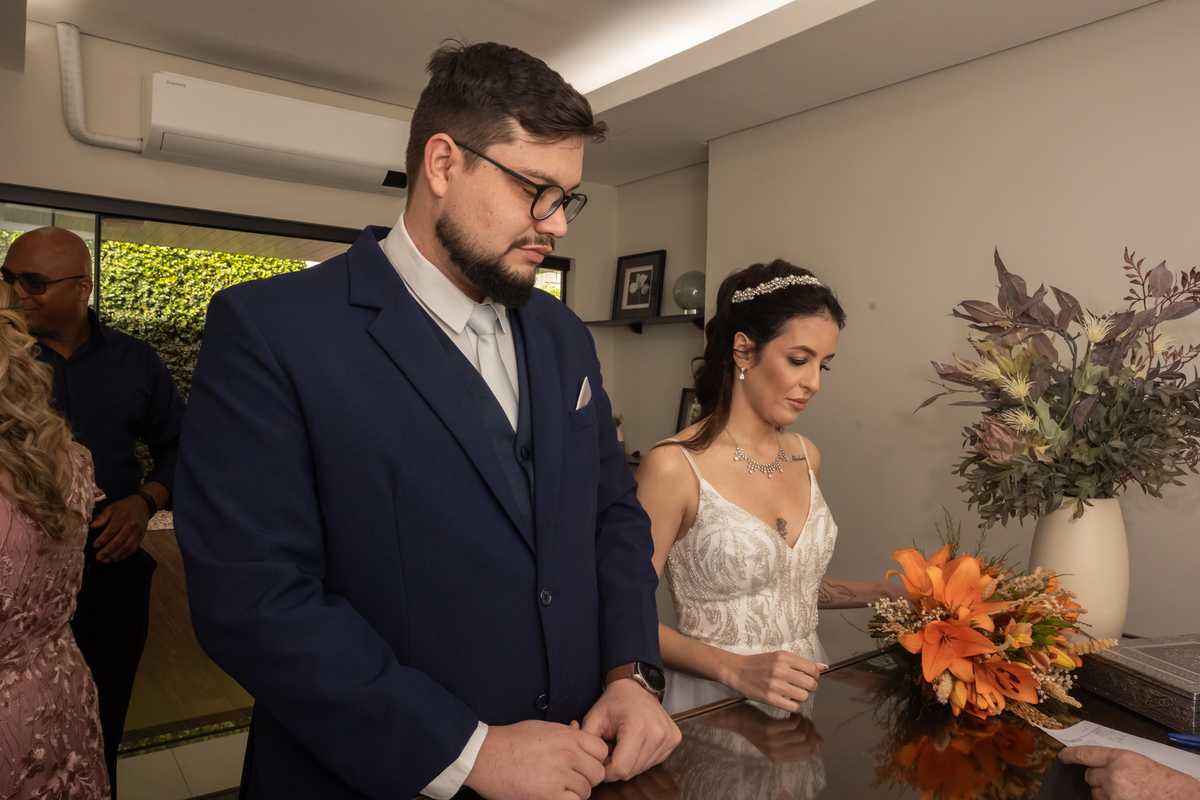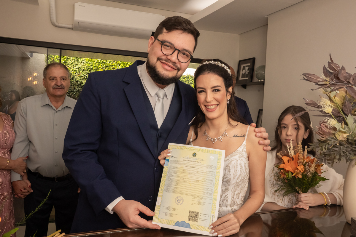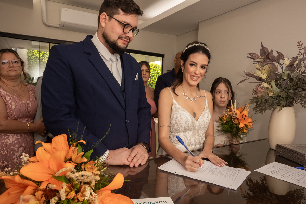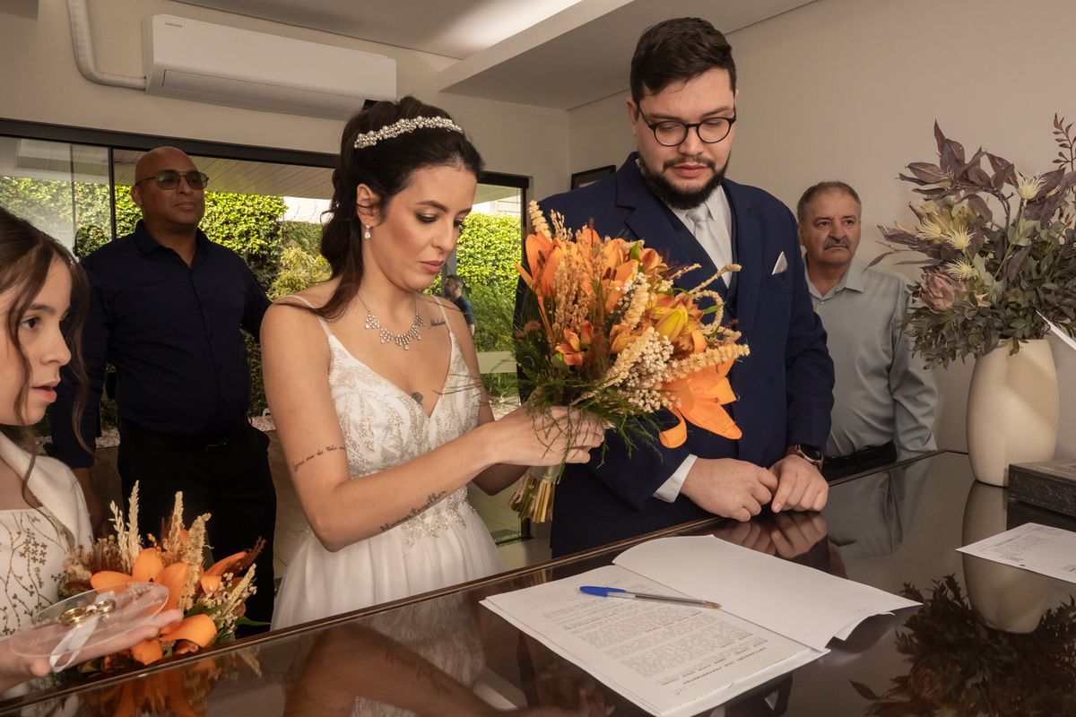 Registro do Casamento Civil da Samantha com o Wellington e recepção no Restaurante Raízes, em Bauru.