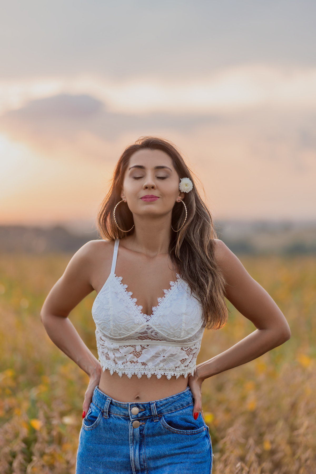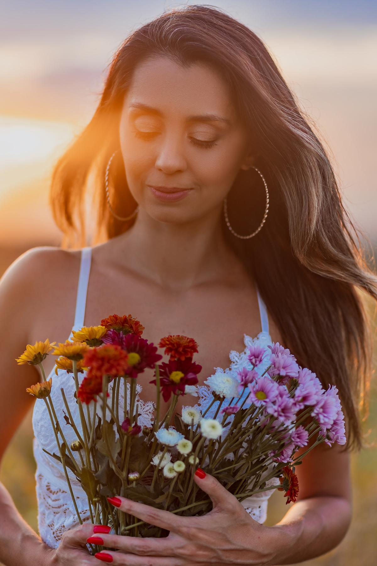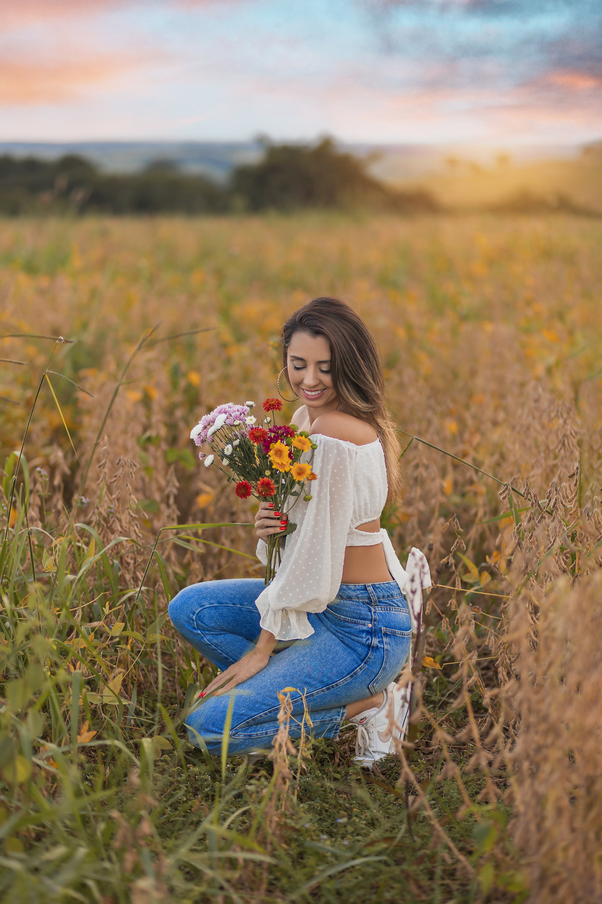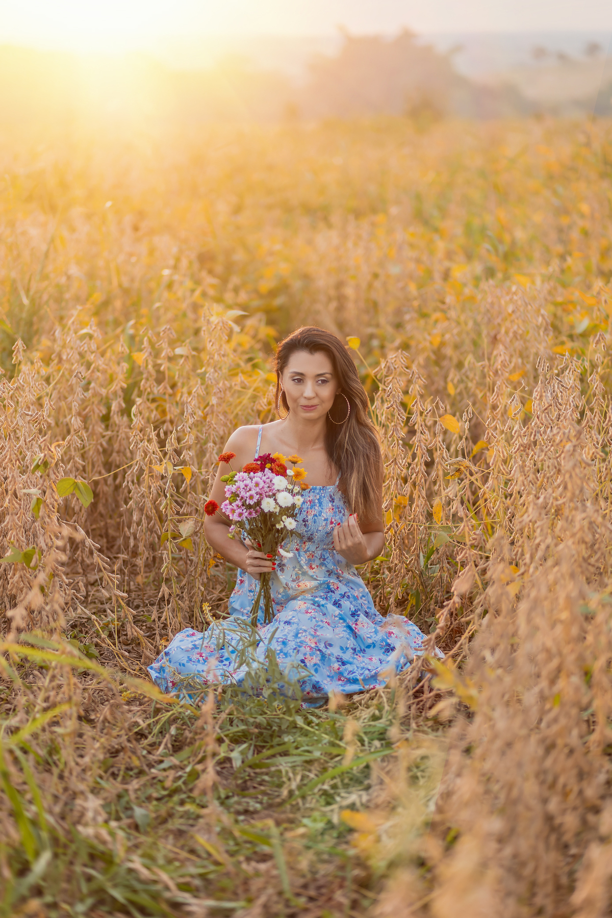 Ensaio feminino com flores, realizado em um lindo pôr do sol com a blogueira Luiza Gomes!