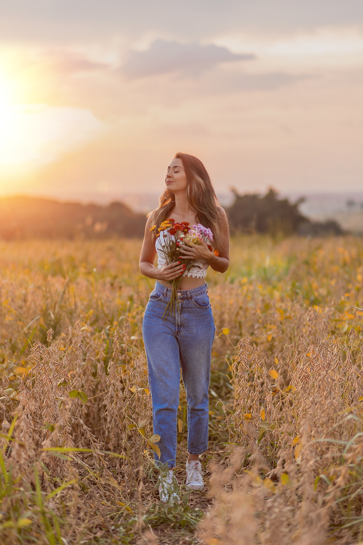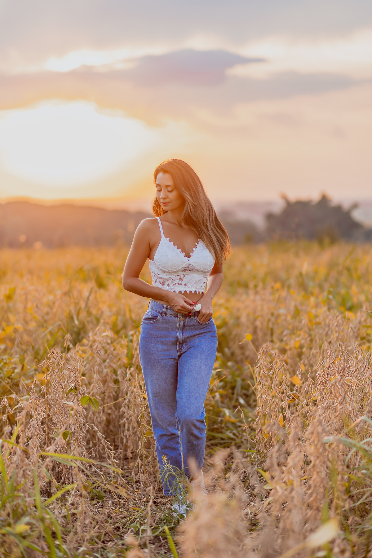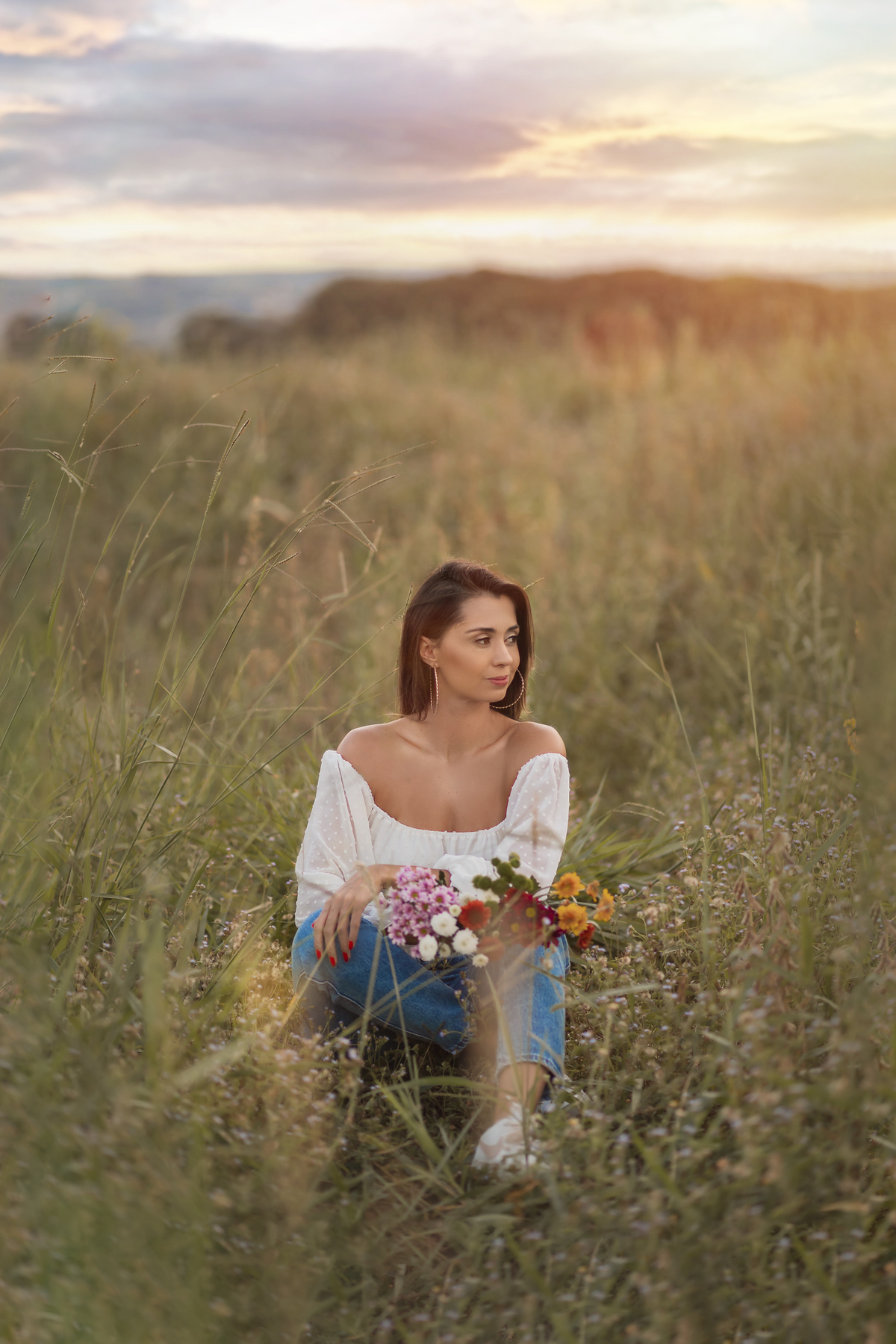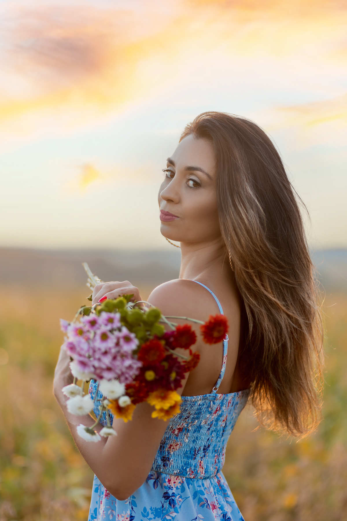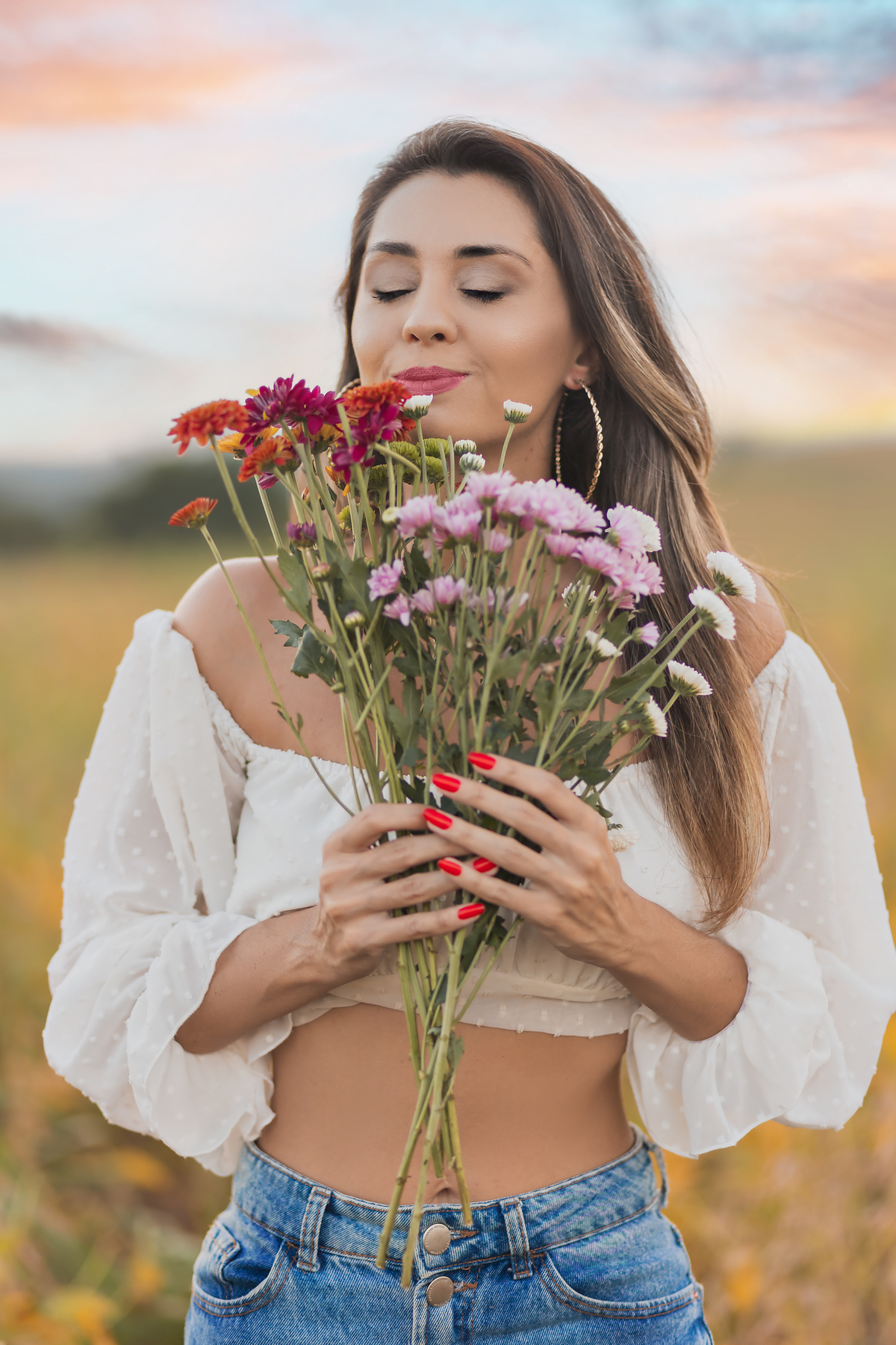 Ensaio feminino com flores, realizado em um lindo pôr do sol com a blogueira Luiza Gomes!